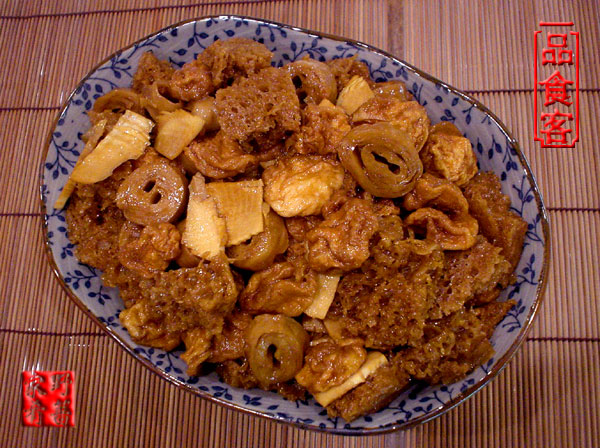 今天我做的這個四樣:烤麩、面腸、冬筍、油面筋,是我個人的偏愛:)) 怎么說呢,就是再有別的几樣,我也會專挑這几樣吃的。