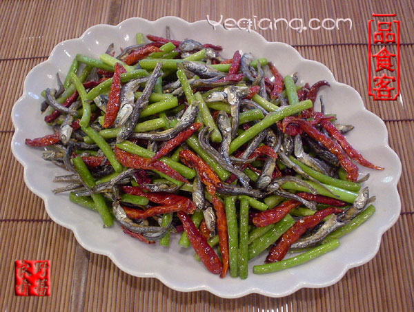 小火翻炒3、4分鐘,鍋里散發出魚的熟香味了,下干辣椒同炒。仍然小火,2、3分鐘。這時候,油里也已經很有魚香和干椒香了,推開小魚及干椒到一邊。