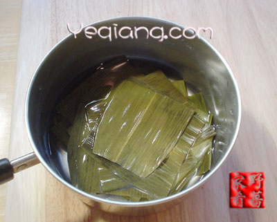 1) “葉”的部分,傳統是用新鮮芭蕉葉,而且要油炒過(不黏)。在海外,最方便得到的是乾粽葉,味道也十分清香。可以在放糰子之前抹一點儿色拉油或菜油,那就怎么也不會粘住葉子了,筷子、叉子都可以拿得起來;不抹油呢,也沒有什么大問題,只是吃的時候須要拎起葉子一陣亂啃------有些斯文掃地罷了:))