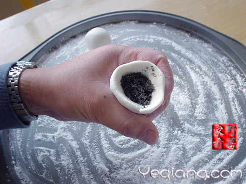 揪下劑子來﹐搓圓。然後拇指開始按洞。